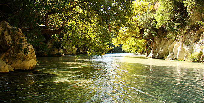 Θεόρατα, ολόλευκα βράχια που υψώνονται κάθετα ως τον ουρανό –ή τουλάχιστον έτσι σου φαίνεται, από εδώ κάτω που τα βλέπεις. Αιωνόβια φουντωτά πλατάνια που απλώνουν τις ρίζες τους στα πιο παράξενα σημεία. Νερά, πολύ παγωμένα νερά, που αναβλύζουν από κάθε σχισμή στους βράχους, δημιουργώντας μικρά καταρρακτάκια. Κι ένα απόκοσμο βουητό που ακούγεται πίσω από κάποιες τέτοιες σχισμές, καθώς το νερό έρχεται με φόρα να ενωθεί με το ποτάμι. Αν έτυχε να αναρωτηθείς, ερχόμενος προς τον Αχέροντα, γιατί απ’ όλα τα ποτάμια της Ελλάδας διάλεξαν αυτό εδώ για είσοδο του κάτω κόσμου, η απάντηση έρχεται να σε βρει από τα πρώτα κιόλας βήματα στα παγωμένα του νερά.